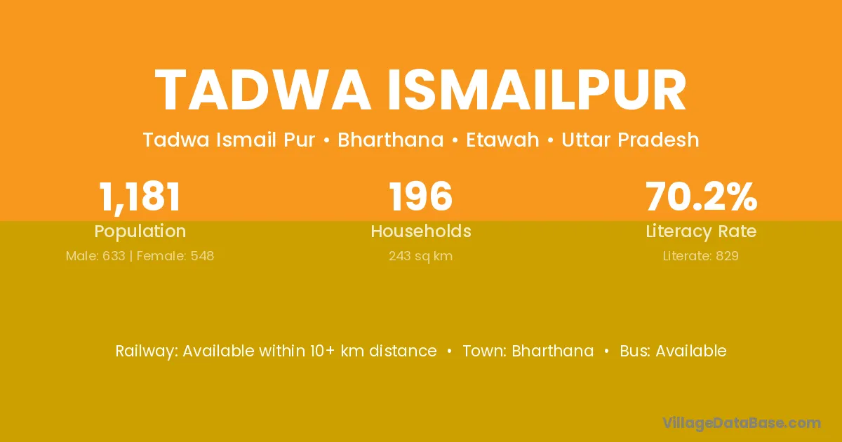 Bharthana is the nearest town to Tadwa Ismailpur village for major economic activities