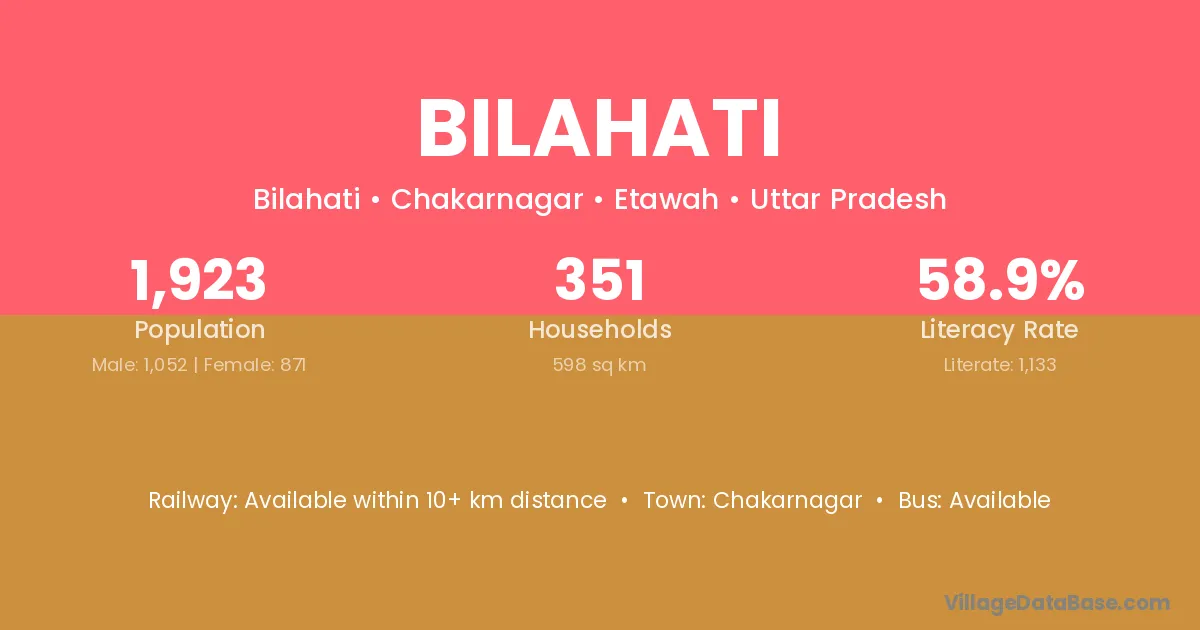 Bilahati village has a total population of 1,923 people, of which 1,052 are males and 871 are females.
