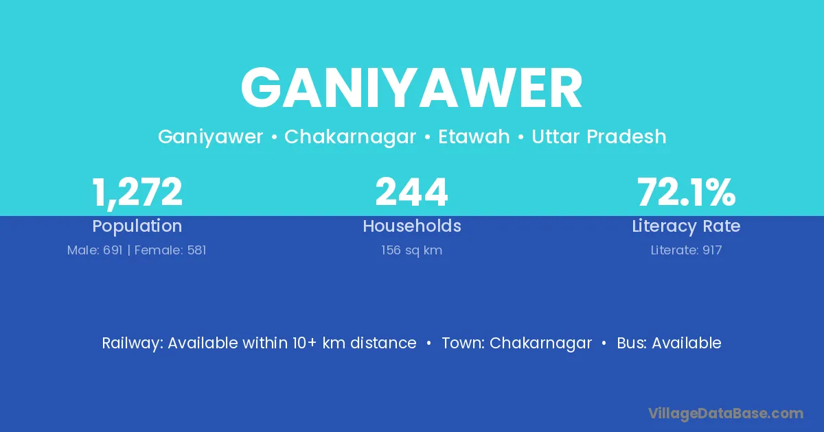 Ganiyawer village has a total population of 1,272 people, of which 691 are males and 581 are females.