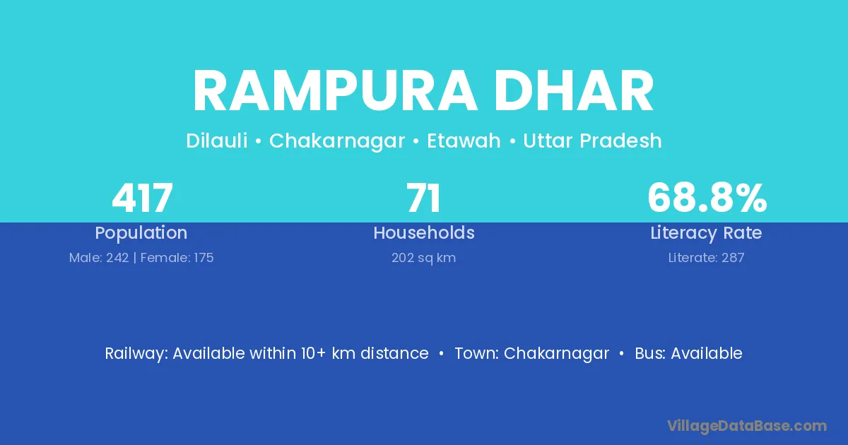 Rampura Dhar village has a total population of 417 people, of which 242 are males and 175 are females.