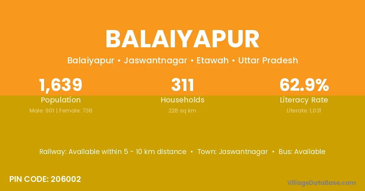 Jaswantnagar is the nearest town to Balaiyapur village for major economic activities