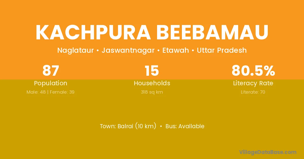 Kachpura Beebamau village has a total population of 87 people, of which 48 are males and 39 are females.