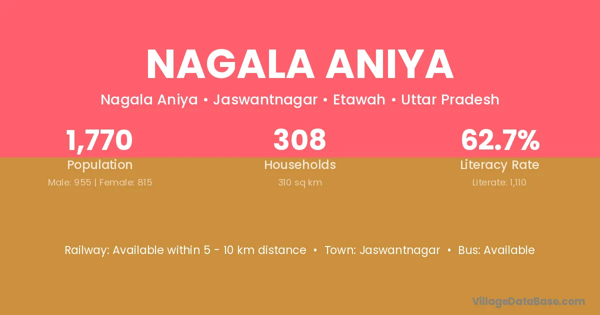Nagala Aniya village has a total population of 1,770 people, of which 955 are males and 815 are females.