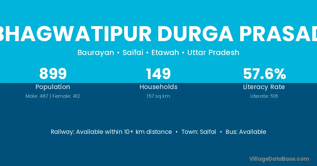 Saifai is the nearest town to Bhagwatipur Durga Prasad village for major economic activities