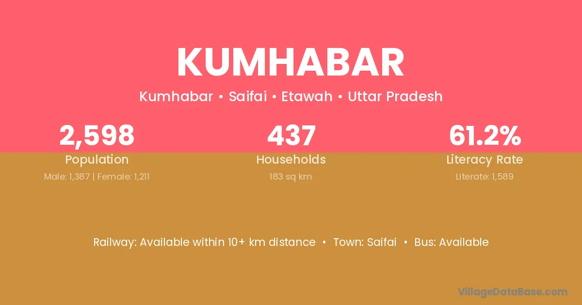 Saifai is the nearest town to Kumhabar village for major economic activities