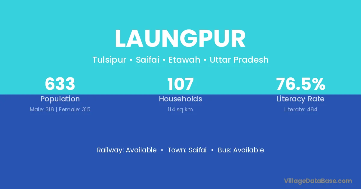 Saifai is the nearest town to Laungpur village for major economic activities