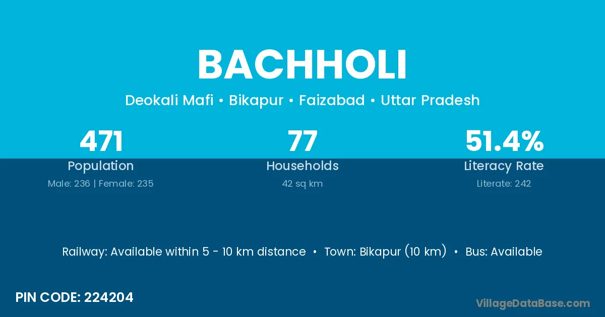 Bikapur (10 km) is the nearest town to Bachholi village for major economic activities and is located approximately 10 km away.