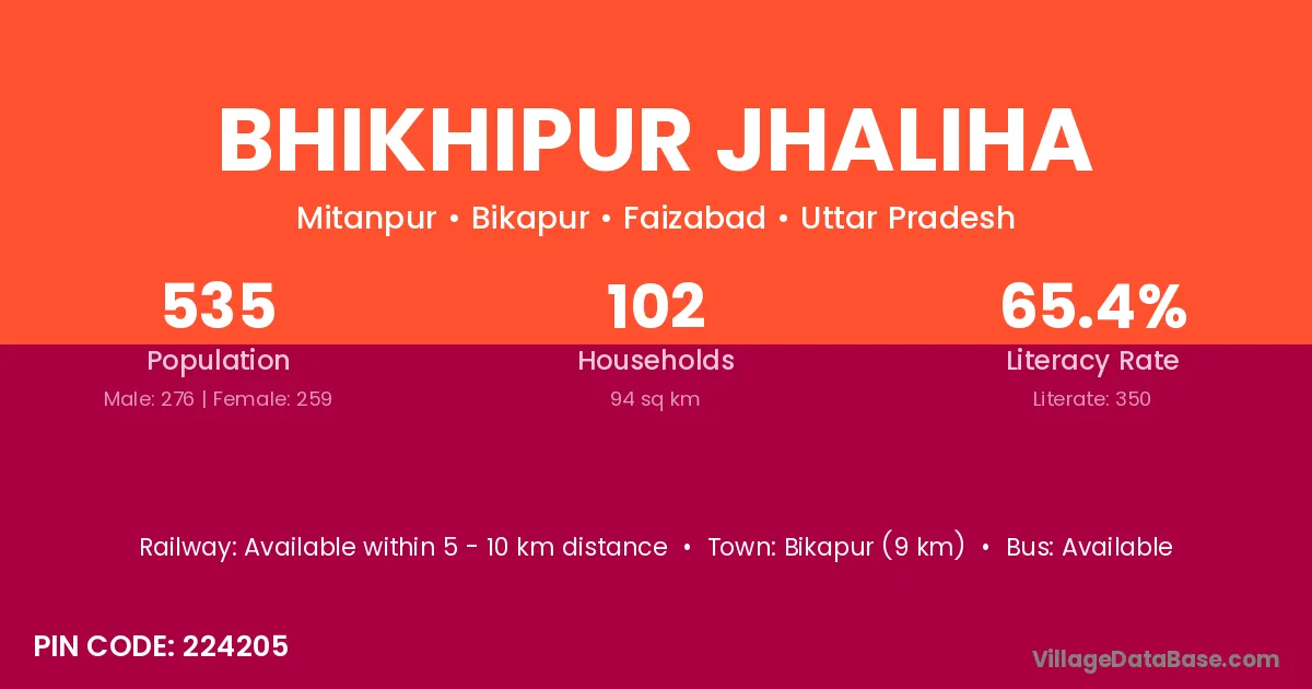 Bikapur (9 km) is the nearest town to Bhikhipur Jhaliha village for major economic activities and is located approximately 9 km away.