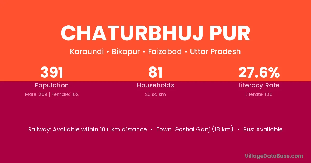 Chaturbhuj Pur village has a total population of 391 people, of which 209 are males and 182 are females.