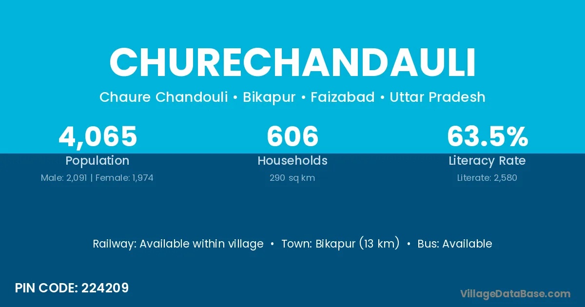 Bikapur (13 km) is the nearest town to Churechandauli village for major economic activities and is located approximately 13 km away.