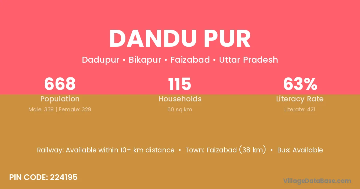 Faizabad (38 km) is the nearest town to Dandu Pur village for major economic activities and is located approximately 38 km away.