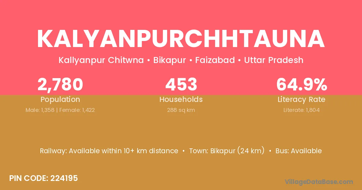 Bikapur (24 km) is the nearest town to Kalyanpurchhtauna village for major economic activities and is located approximately 24 km away.
