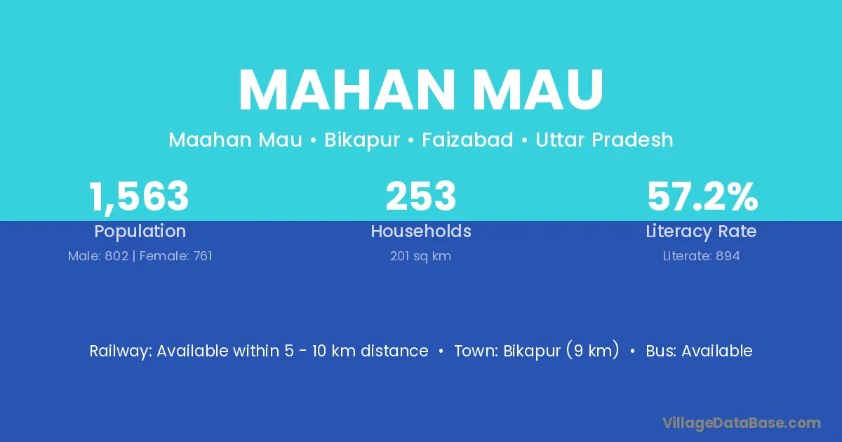 Bikapur (9 km) is the nearest town to Mahan Mau village for major economic activities and is located approximately 9 km away.