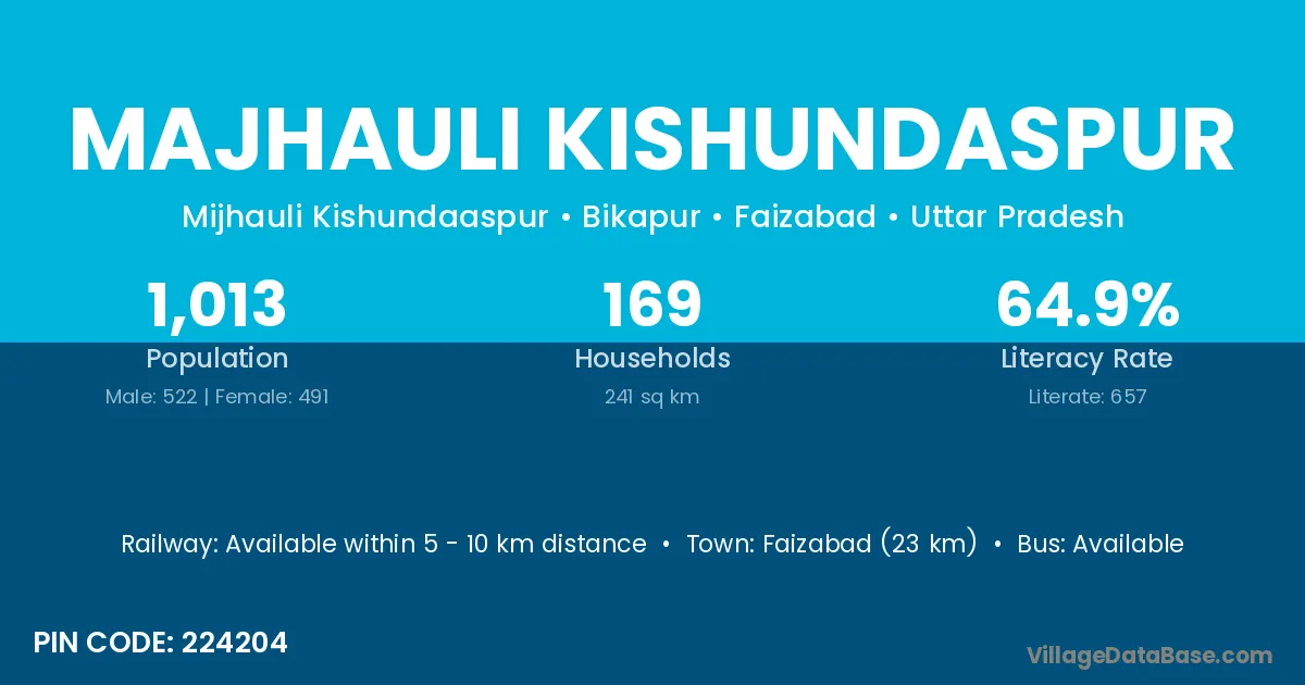 Majhauli Kishundaspur village has a total population of 1,013 people, of which 522 are males and 491 are females.