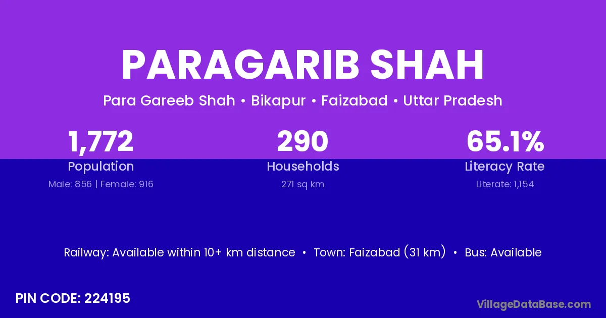 Faizabad (31 km) is the nearest town to Paragarib Shah village for major economic activities and is located approximately 31 km away.