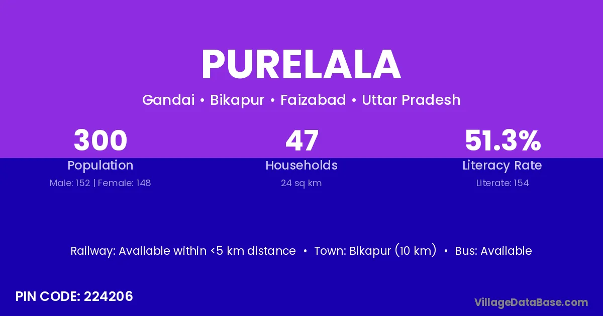 Bikapur (10 km) is the nearest town to Purelala village for major economic activities and is located approximately 10 km away.