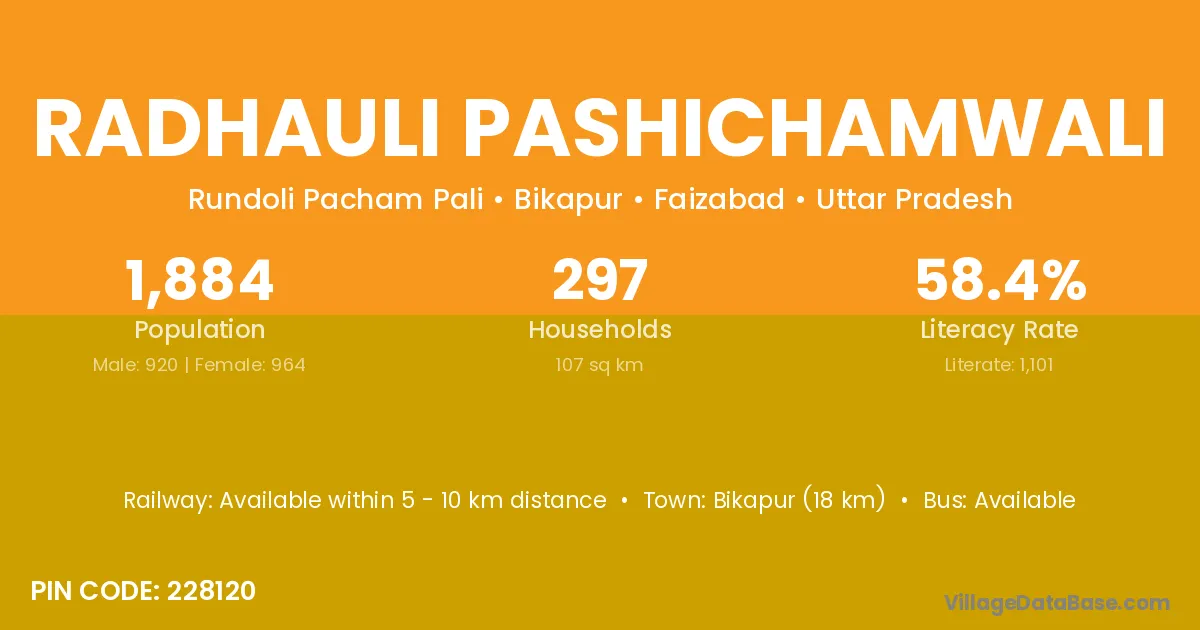 Bikapur (18 km) is the nearest town to Radhauli Pashichamwali village for major economic activities and is located approximately 18 km away.