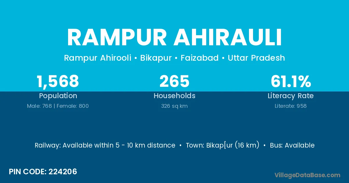 Bikap[ur (16 km) is the nearest town to Rampur Ahirauli village for major economic activities and is located approximately 16 km away.