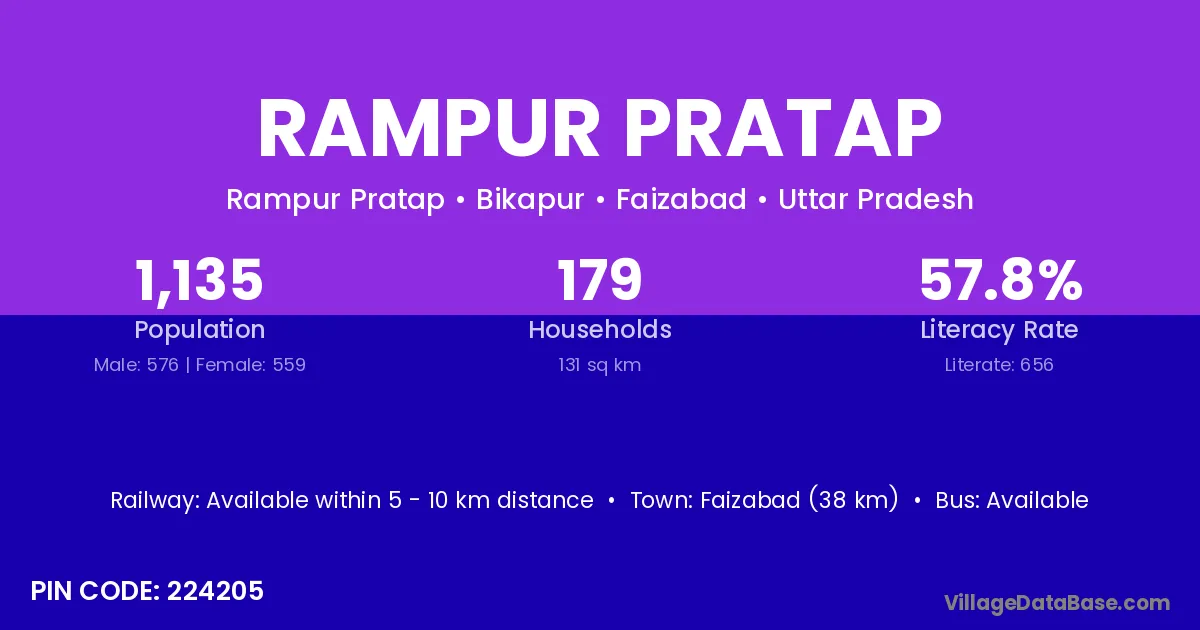 Faizabad (38 km) is the nearest town to Rampur Pratap village for major economic activities and is located approximately 38 km away.