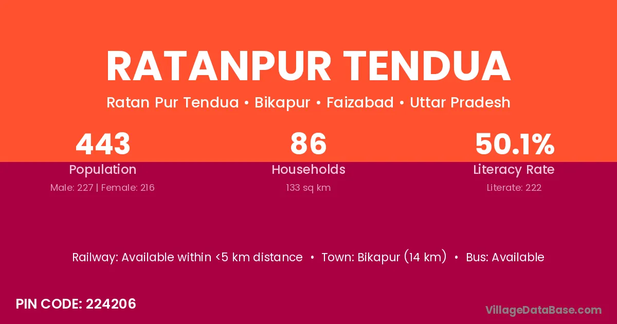 Bikapur (14 km) is the nearest town to Ratanpur Tendua village for major economic activities and is located approximately 14 km away.