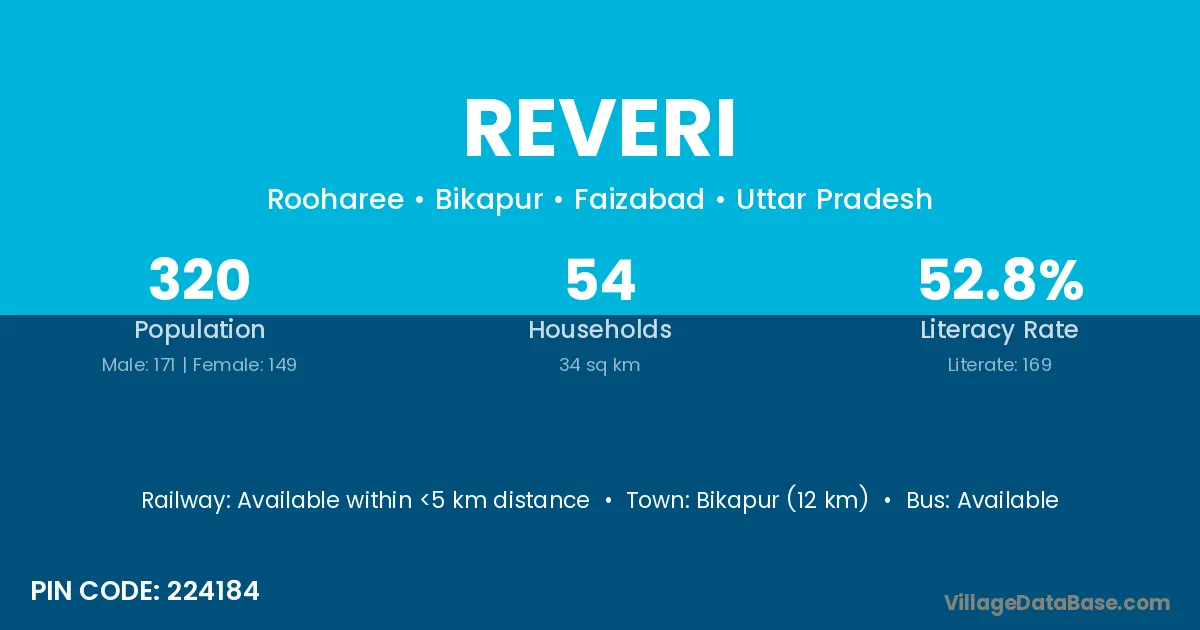 Bikapur (12 km) is the nearest town to Reveri village for major economic activities and is located approximately 12 km away.