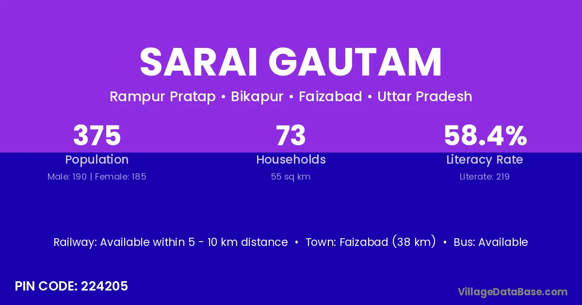 Faizabad (38 km) is the nearest town to Sarai Gautam village for major economic activities and is located approximately 38 km away.
