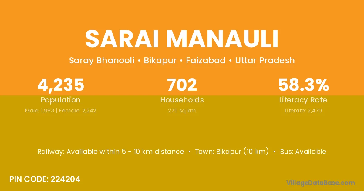 Bikapur (10 km) is the nearest town to Sarai Manauli village for major economic activities and is located approximately 10 km away.