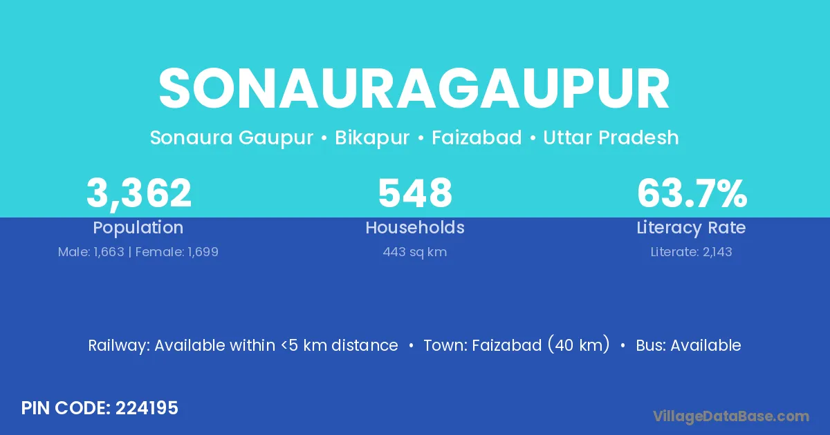 Faizabad (40 km) is the nearest town to Sonauragaupur village for major economic activities and is located approximately 40 km away.