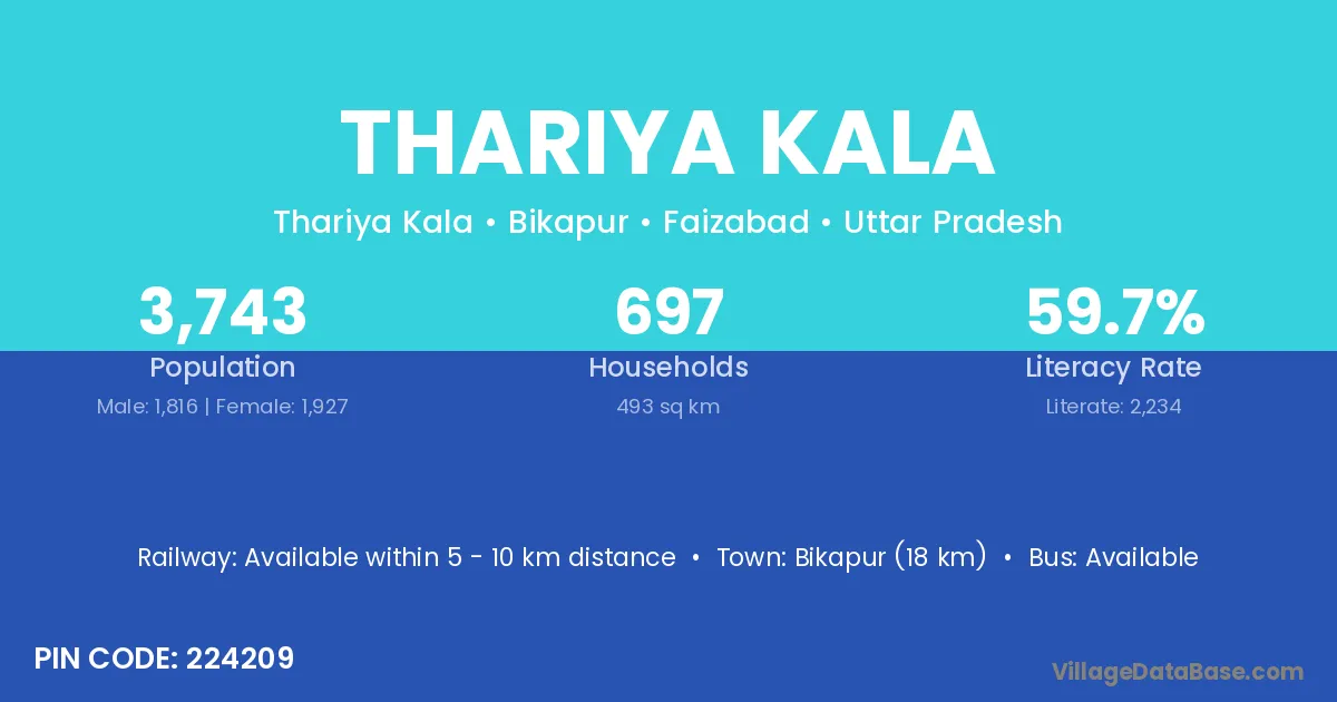Bikapur (18 km) is the nearest town to Thariya Kala village for major economic activities and is located approximately 18 km away.