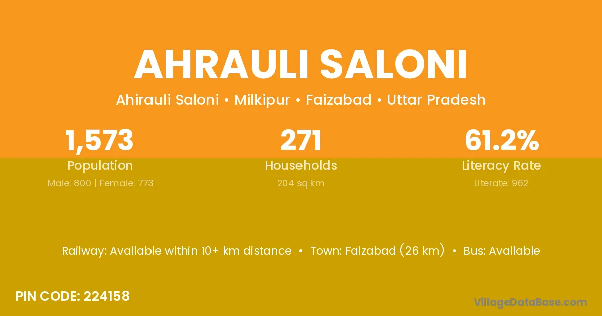 Faizabad (26 km) is the nearest town to Ahrauli Saloni village for major economic activities and is located approximately 26 km away.