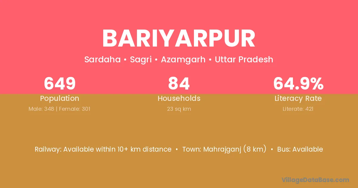 Faizabad (40 km) is the nearest town to Bariyarpur village for major economic activities and is located approximately 40 km away.