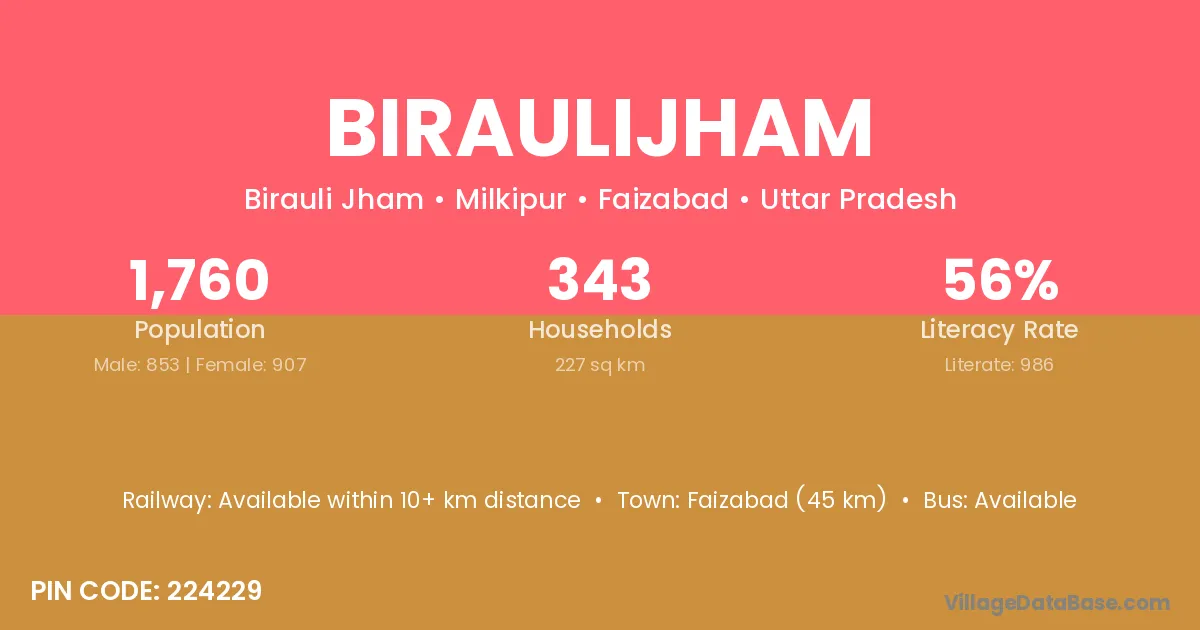 Faizabad (45 km) is the nearest town to Biraulijham village for major economic activities and is located approximately 45 km away.