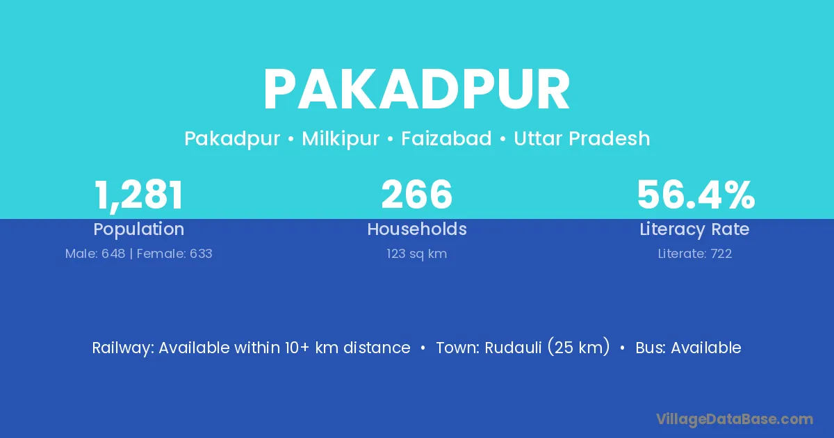 Rudauli (25 km) is the nearest town to Pakadpur village for major economic activities and is located approximately 25 km away.