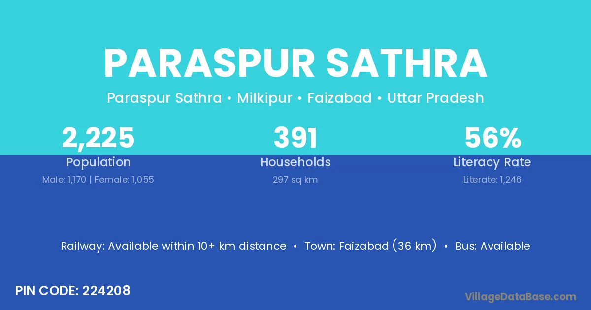 Faizabad (36 km) is the nearest town to Paraspur Sathra village for major economic activities and is located approximately 36 km away.