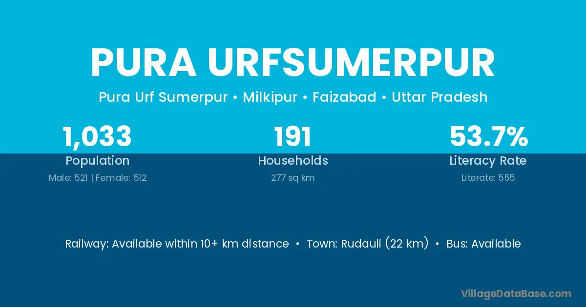 Rudauli (22 km) is the nearest town to Pura Urfsumerpur village for major economic activities and is located approximately 22 km away.
