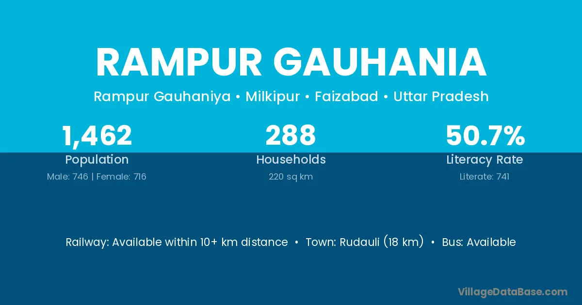 Rampur Gauhania village has a total population of 1,462 people, of which 746 are males and 716 are females.