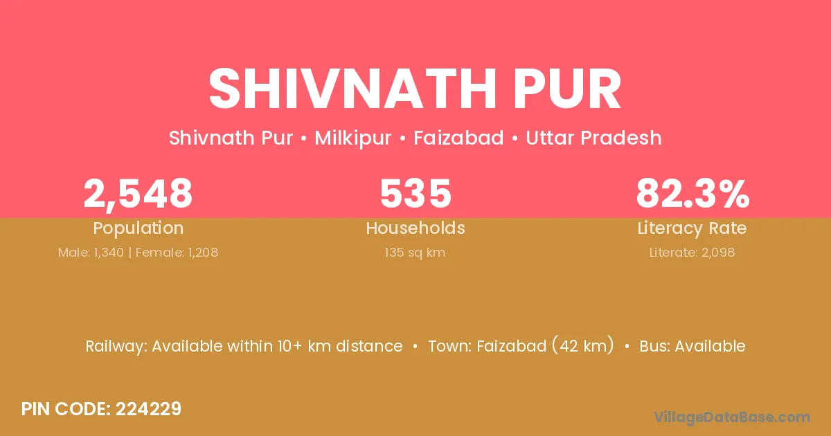 Faizabad (42 km) is the nearest town to Shivnath Pur village for major economic activities and is located approximately 42 km away.