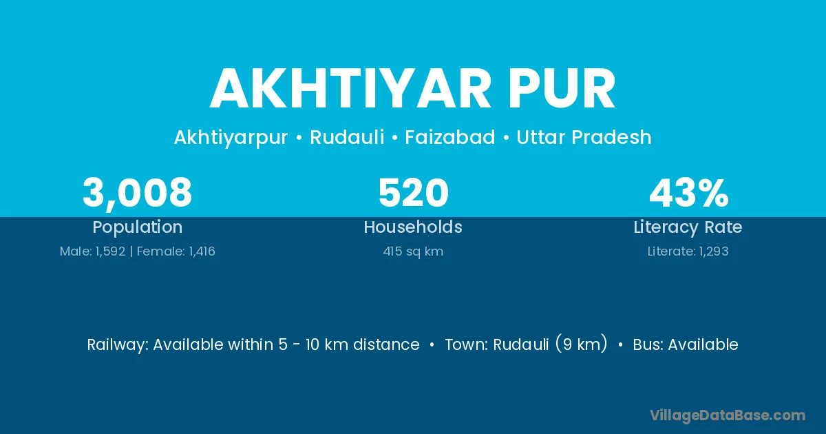 Rudauli (9 km) is the nearest town to Akhtiyar Pur village for major economic activities and is located approximately 9 km away.