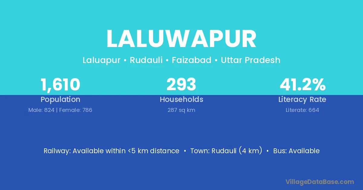Rudauli (4 km) is the nearest town to Laluwapur village for major economic activities and is located approximately 4 km away.