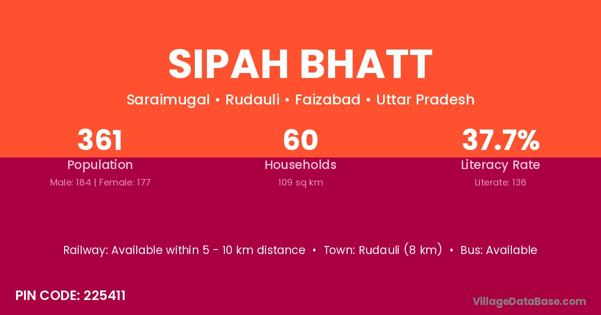 Sipah Bhatt village has a total population of 361 people, of which 184 are males and 177 are females.