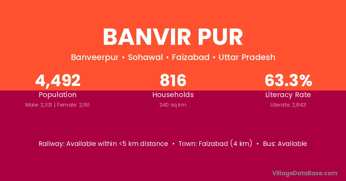 Faizabad (4 km) is the nearest town to Banvir Pur village for major economic activities and is located approximately 4 km away.