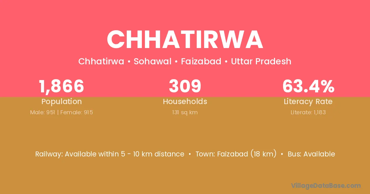 Faizabad (18 km) is the nearest town to Chhatirwa village for major economic activities and is located approximately 18 km away.