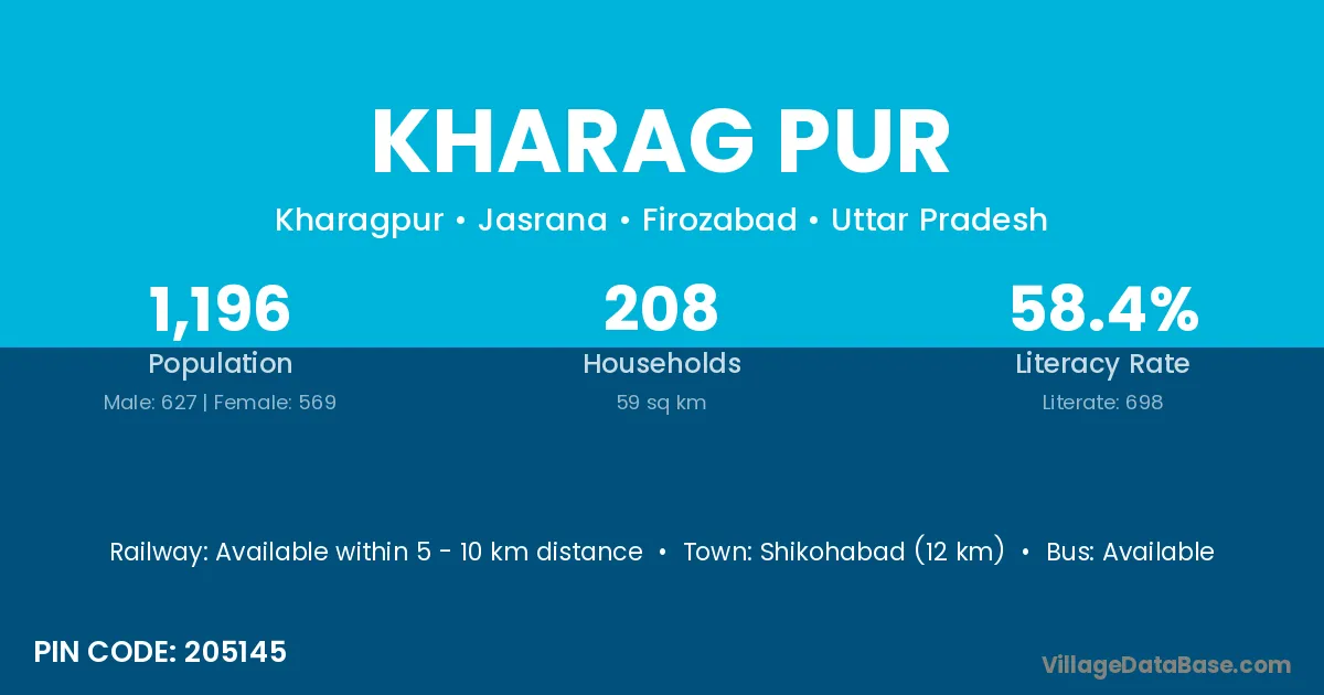 Faizabad (12 km) is the nearest town to Kharag Pur village for major economic activities and is located approximately 12 km away.