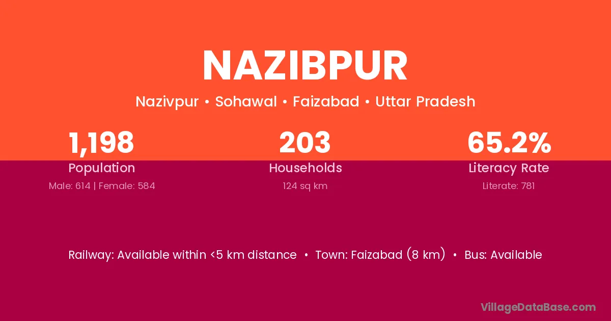 Faizabad (8 km) is the nearest town to Nazibpur village for major economic activities and is located approximately 8 km away.