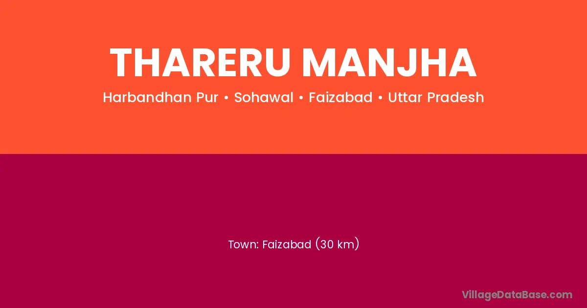 Faizabad (30 km) is the nearest town to Thareru Manjha village for major economic activities and is located approximately 30 km away.
