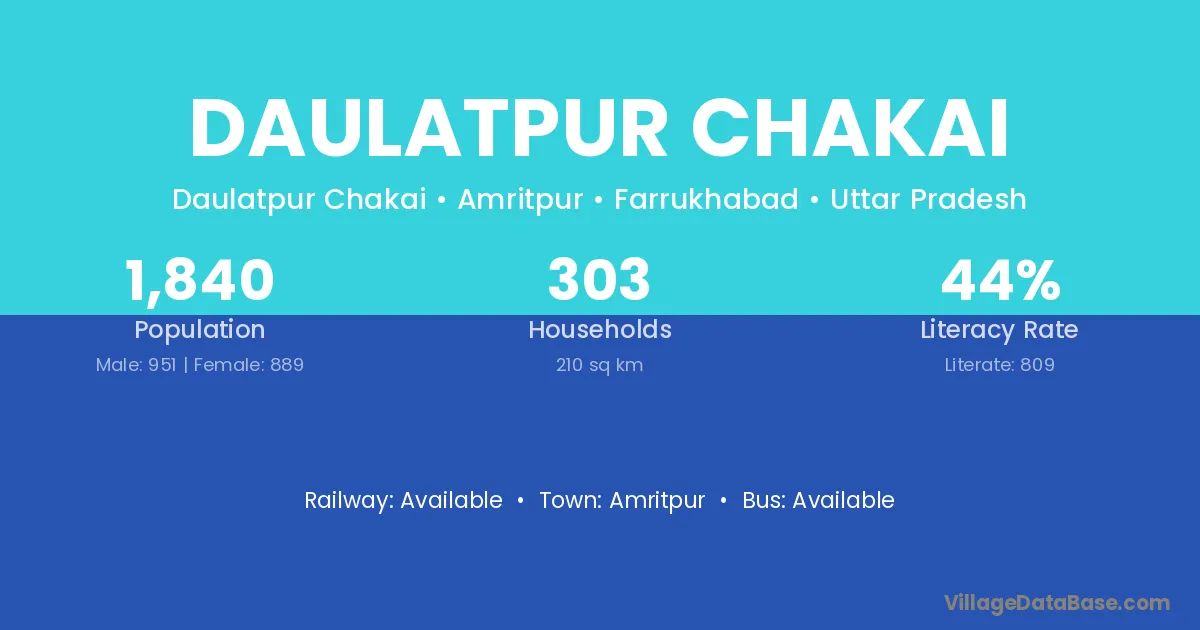 Daulatpur Chakai village has a total population of 1,840 people, of which 951 are males and 889 are females.