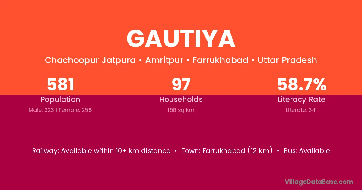 Farrukhabad (12 km) is the nearest town to Gautiya village for major economic activities and is located approximately 12 km away.