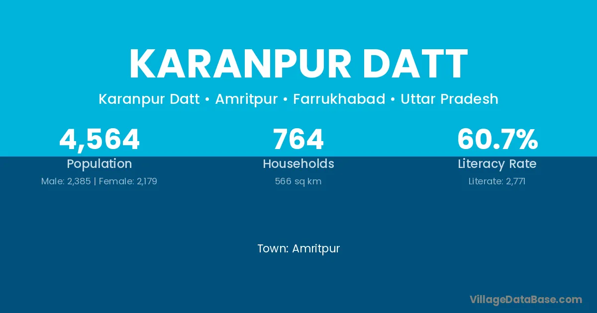 Karanpur Datt village has a total population of 4,564 people, of which 2,385 are males and 2,179 are females.