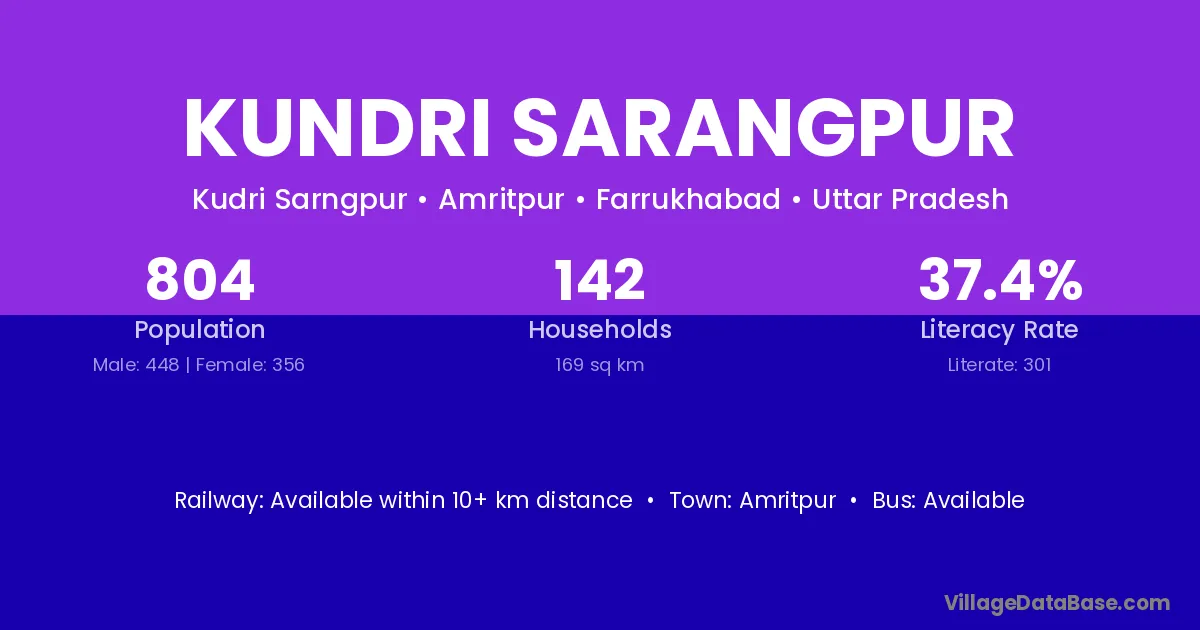 Kundri Sarangpur village has a total population of 804 people, of which 448 are males and 356 are females.