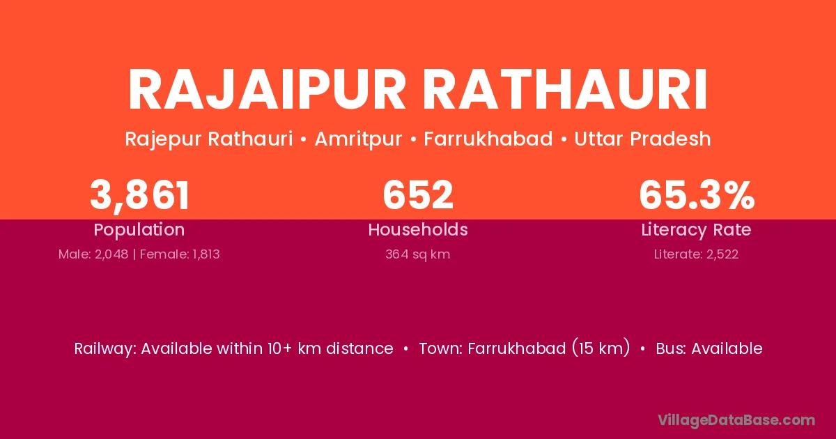 Farrukhabad (15 km) is the nearest town to Rajaipur Rathauri village for major economic activities and is located approximately 15 km away.